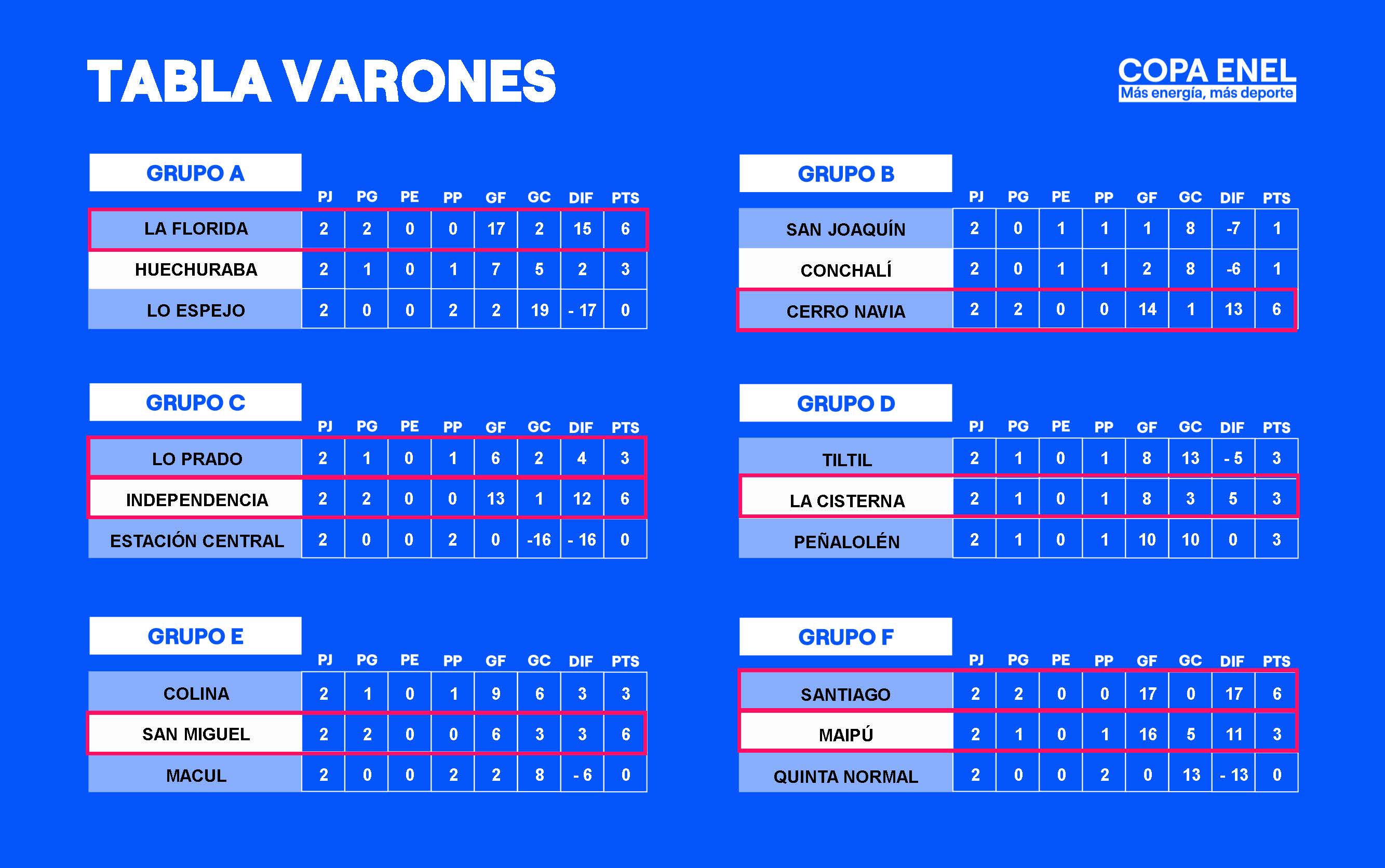 Fixture fase final y tabla de posiciones - Varones
