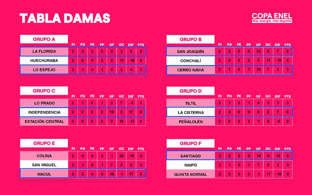 Fixture fase final y tabla de posiciones - Damas