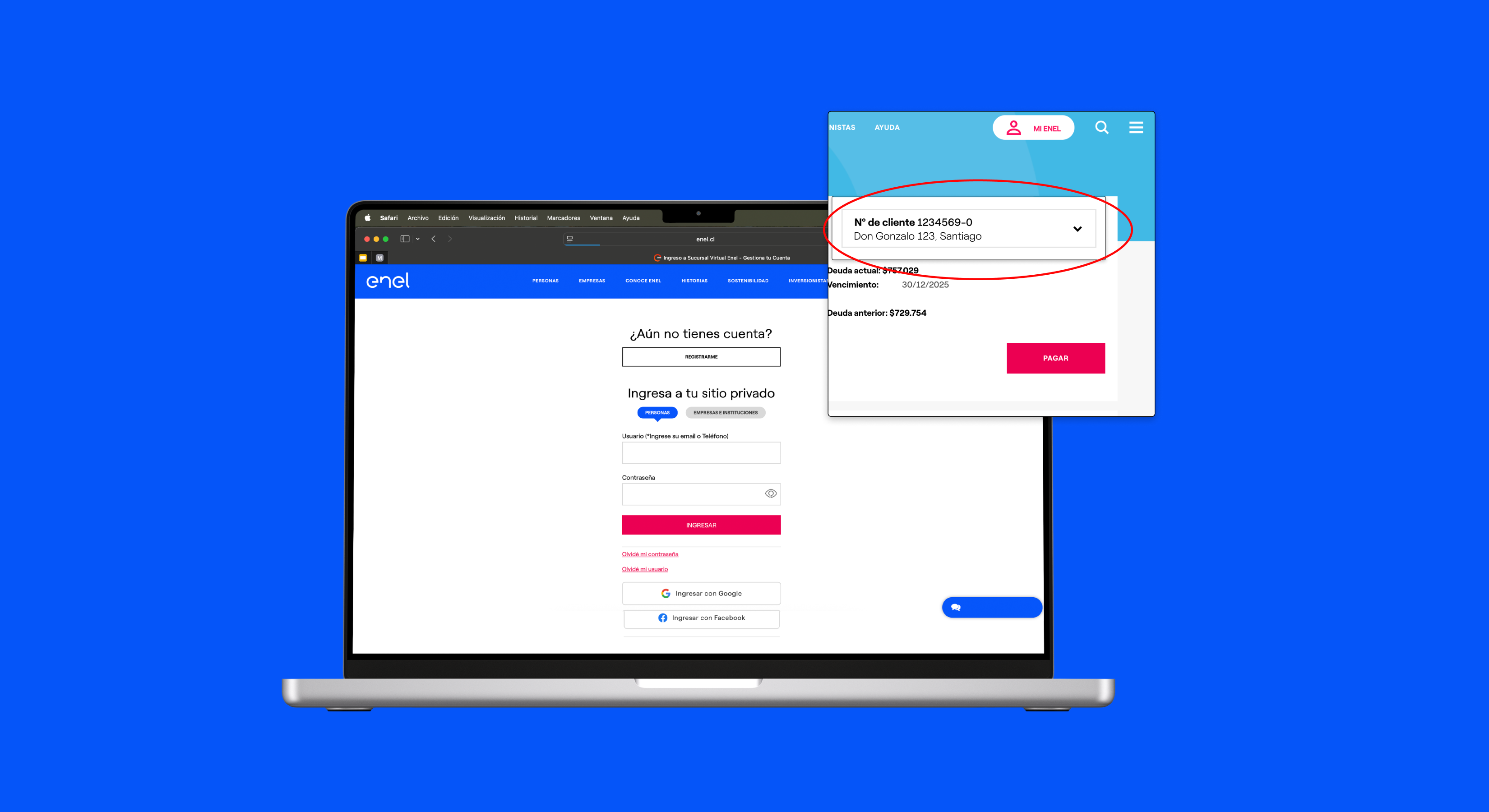 Desde abril cambiará tu forma de pagar en enel.cl, seguirás pagando desde el mismo lugar de siempre y con el mismo flujo, lo único que cambia es que, al momento de confirmar tu pago, se te pedirá ingresar a tu Sucursal Virtual, para proteger tus datos y transacciones.